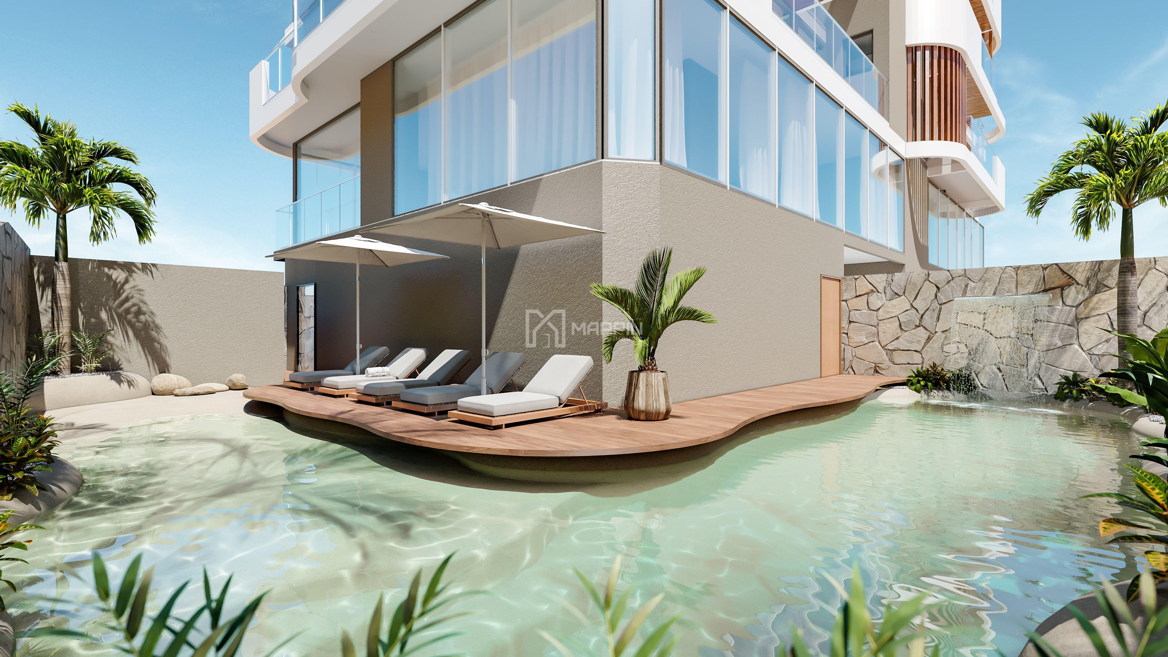 Arquitetura autoral com a Marca Maori, inspirado nas curvas e movimentos suaves das ondas do mar, o Praya proporciona uma experiência luxuosa e única.