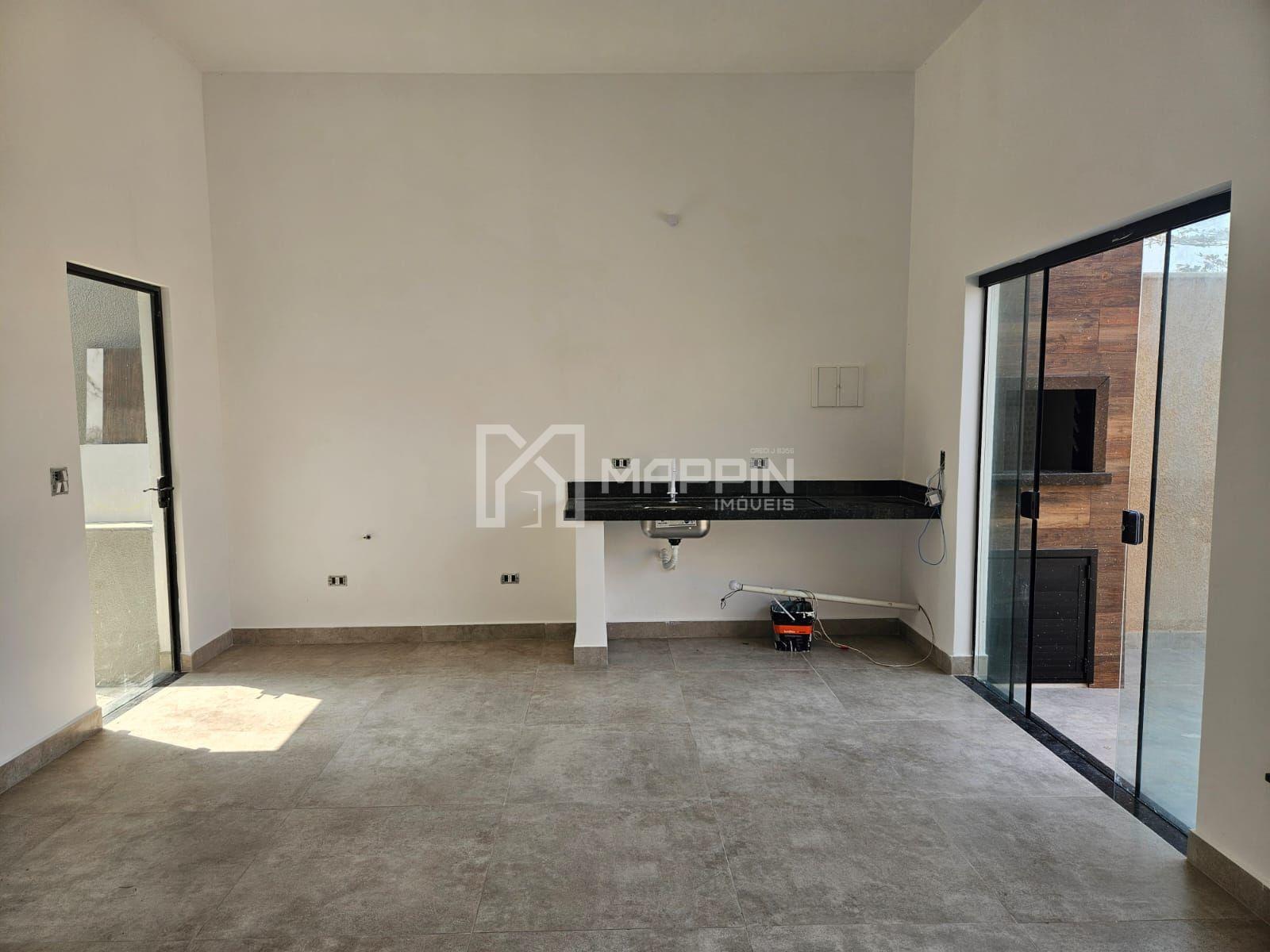 A casa possui ampla sala para dois ambientes (estar e jantar), integrada a uma cozinha em conceito americano, criando um ambiente moderno e funcional para o dia a dia.