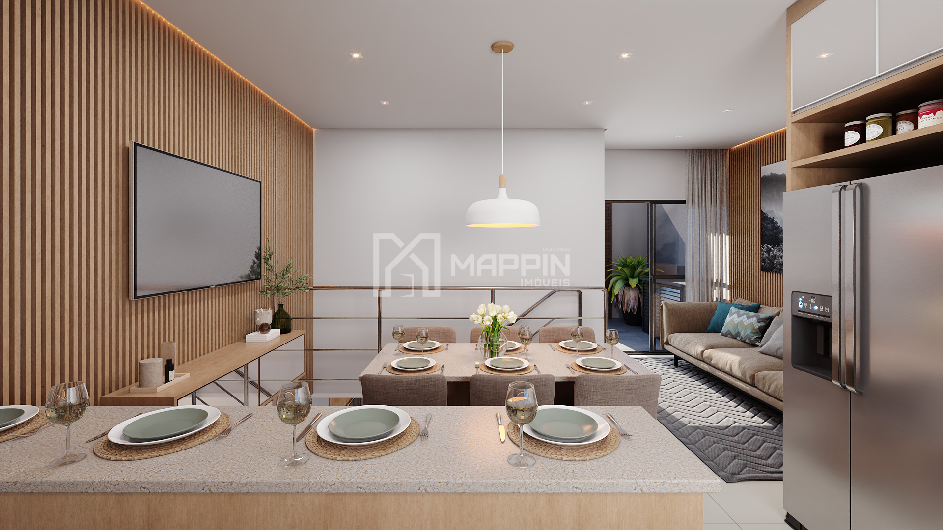 - Sala de estar, jantar e cozinha